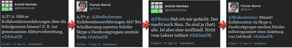 Beim zweiten deutschen EdchatDE, einem wilden und überaus bereichernden Twitter-Gewitter über ein abgesprochenes Bildungsthema (hier: Kollaboration), kam bei mir die Frage auf, ob wohl schon jemand Erfahrungen mit schulübergreifender Kollaboration hätte. Schließlich lernen in einem Bundesland alle Schüler dieselben Themen. Da wäre eine Zusammenarbeit gut möglich. Die Erfahrungen beim Educhat […]